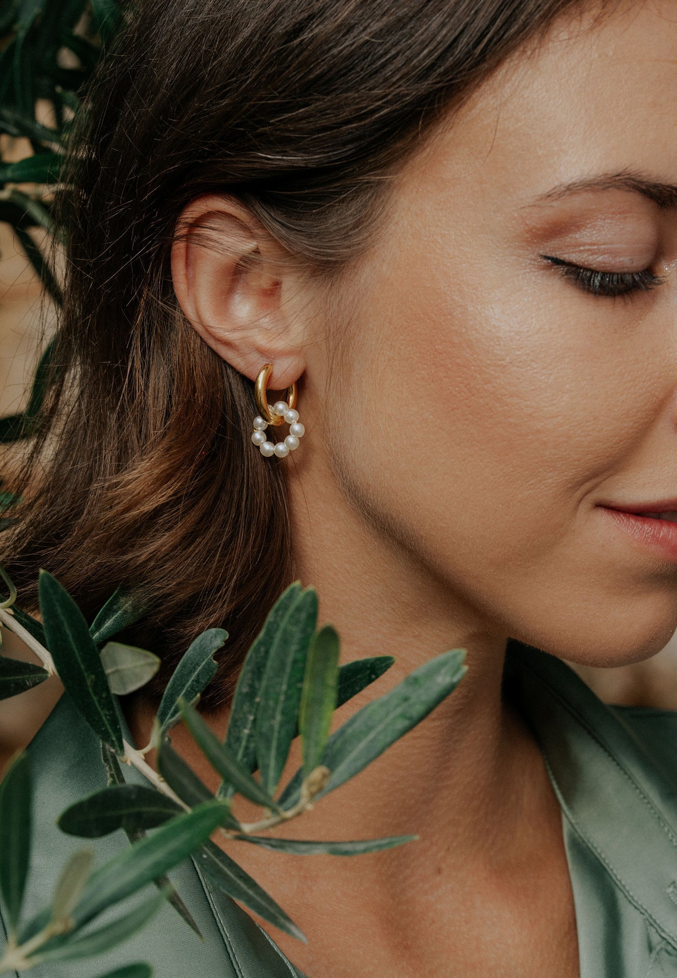 Elegancia clásica con un toque especial. Los Pendientes Confianza combinan aros dorados audaces con un colgante desmontable hecho de perlas artificiales de alta calidad. Movimiento sutil, brillo elevado: llévalos con o sin el colgante para dos estilos atemporales.