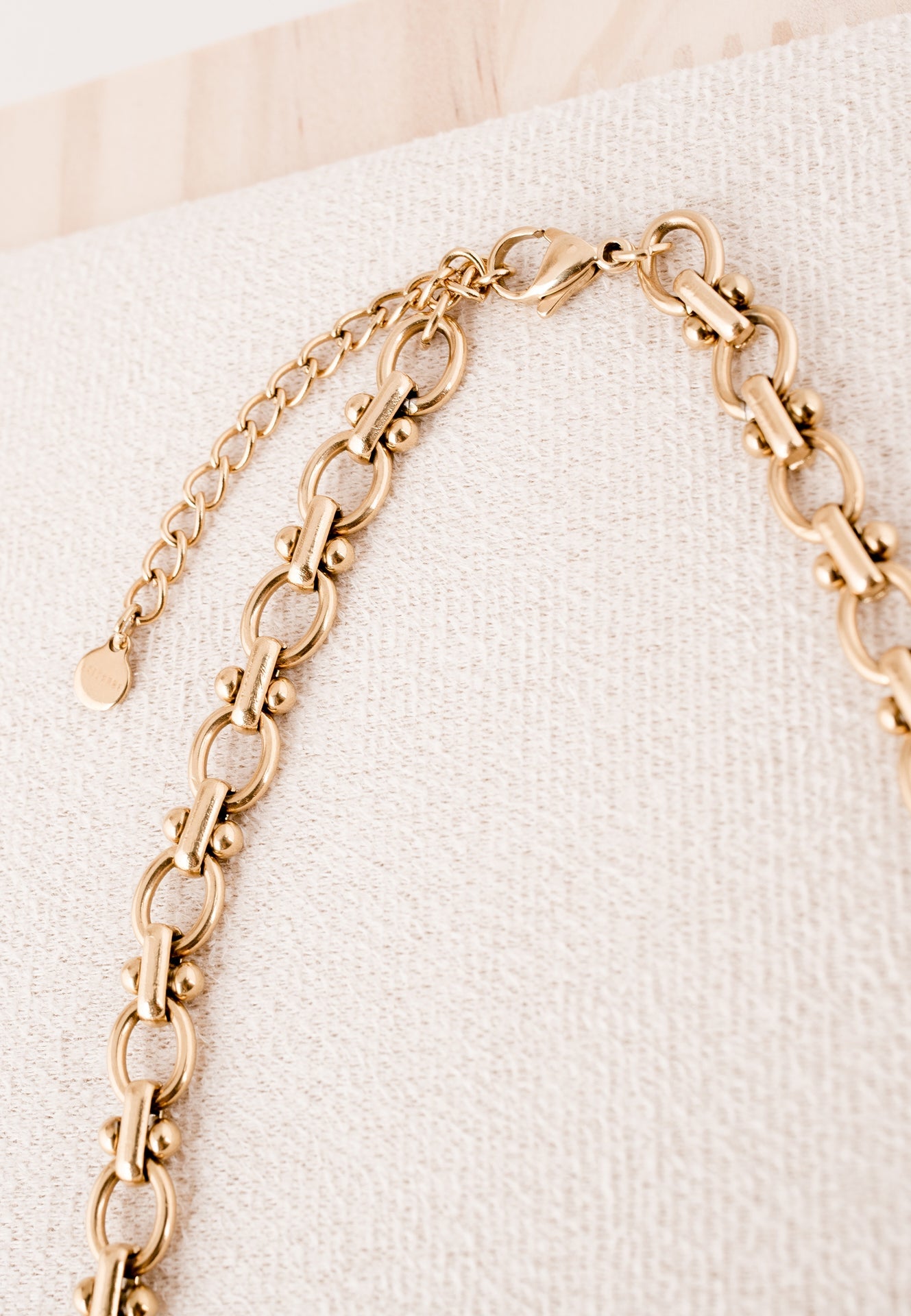 Fuerza en el detalle. Estilo con estructura. El Collar Resilience presenta un diseño audaz de cadena con eslabones ovalados (7 mm x 4 mm) y acentos esféricos elevados que crean profundidad y definición. Terminado con una sutil moneda con el logo en el extensor, esta pieza está hecha para destacar mientras se mantiene cómoda para usar todos los días.