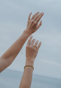Forma mínima. Impacto máximo. El Brazalete Zephyr combina una elegancia sencilla con un toque retro sutil, presentando un diseño de cadena delicada con segmentos pulidos que captan la luz de manera hermosa.