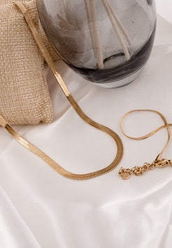 Grace in motion. The Essence Necklace features a flowing, flat chain with a soft wave-like curve that catches the light with every movement. Worn solo or layered, it brings elegant fluidity and bold simplicity to any look.